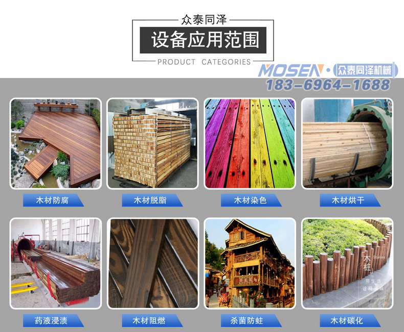 木材罐廣泛應用于木材和板材的加工制作中,能實現木材的染色、防腐、烘干、阻燃、殺菌、防蛀等多種工藝要求,是木材建材加工和家具制作中重要的生產設備。